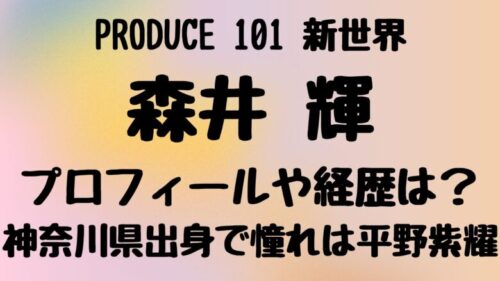 2026年放送のオーディション番組「PRODUCE 101 JAPAN 新世界(日プ4)」に出演し、注目を集めている森井輝(もりい てる)さん。 ダンス・歌・ラップをこなす実力に加え、個性的な感性やキャラクターでも話題になっています。 この記事では、森井輝さんのプ... -