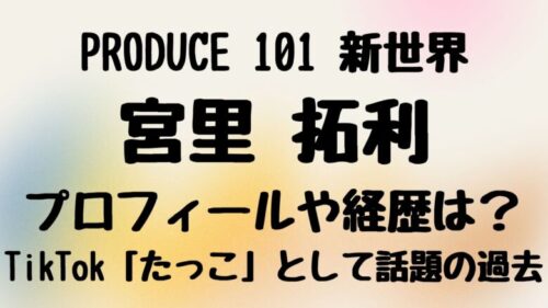 「PRODUCE 101 JAPAN 新世界(日プ4)」にも出演し注目を集めている宮里 拓利(みやざと たくと)さん。 そのさわやかな雰囲気と確かな実力で、「どんな経歴の持ち主なんだろう?」と気になっている方も多いのではないでしょうか。 本記事では、宮里 拓利さん... -