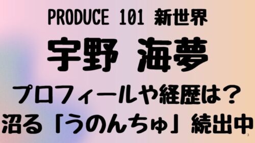 2026年春放送の大人気オーディション番組「PRODUCE 101 JAPAN 新世界(日プ4)」出演の宇野 海夢(うの かいむ)さん。 本記事は、宇野 海夢さんをまだ知らない方の為に、wiki風にして詳しくプロフィールや経歴を調査しました。 ぜひ最後までご覧ください! 宇... -