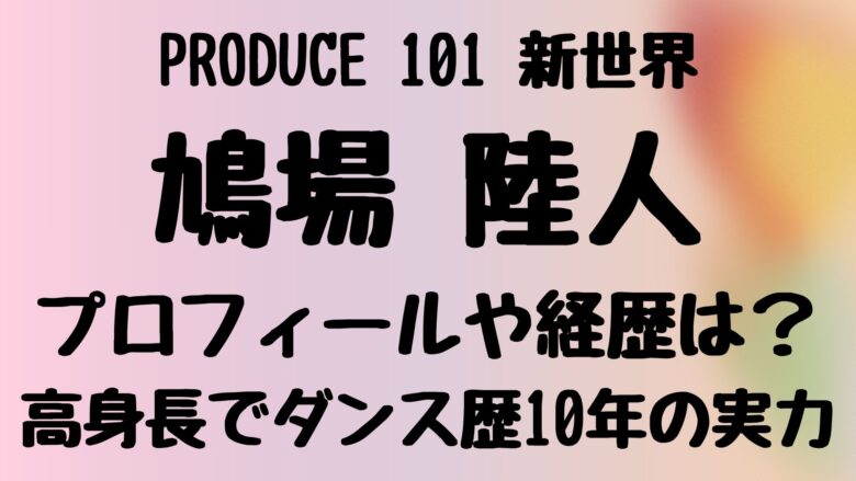 鳩場陸人さんは、2026年に放送されるオーディション番組『 PRODUCE 101 JAPAN 新世界 (日プ4)』に参加し、デビューを目指して挑戦しています。
