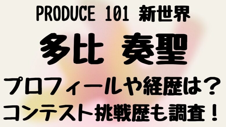 2026年、多比 奏聖さんはオーディション番組「PRODUCE 101 JAPAN 新世界(日プ4)」に参加。