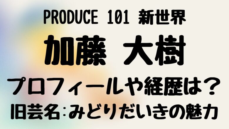 加藤大樹さんは、2026年春大人気オーディション番組『PRODUCE 101 JAPAN 新世界(日プ4)』へ出演が決まっています。