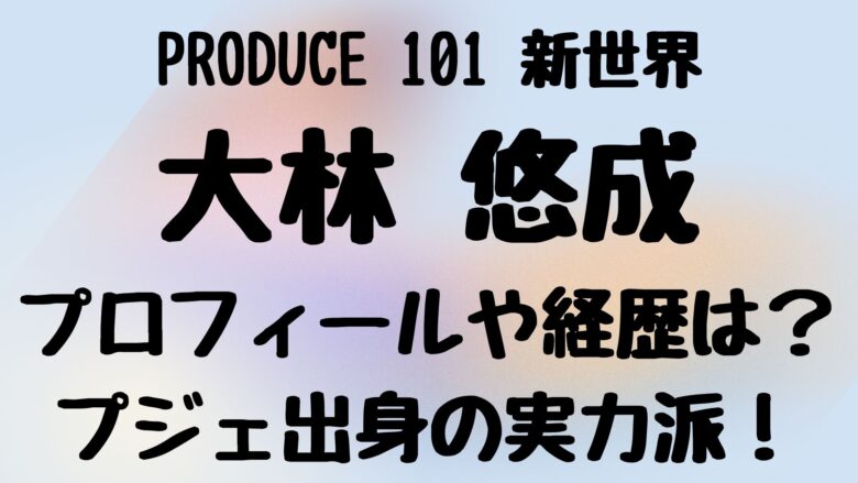 大林 悠成さんは、JO1、INI、ME:Iを誕生させた日本最大級のサバイバルオーディション番組「PRODUCE 101 JAPAN」の第4弾「PRODUCE 101 JAPAN 新世界(日プ4)」に出演が発表されました。
