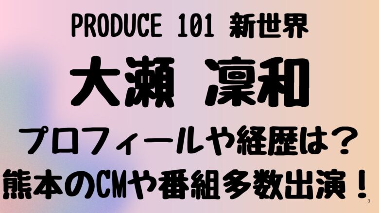 その後、2026年に出演するオーディション番組PRODUCE 101 JAPAN 新世界(日プ4) への参加にあたり、本名である「大瀬 凜和」 へ改名したと思われます。