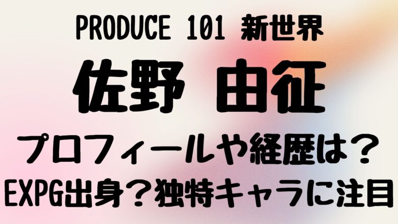 佐野由征さんは、2026年放送のオーディション番組「PRODUCE 101 JAPAN 新世界(日プ4)」に練習生として参加しています。